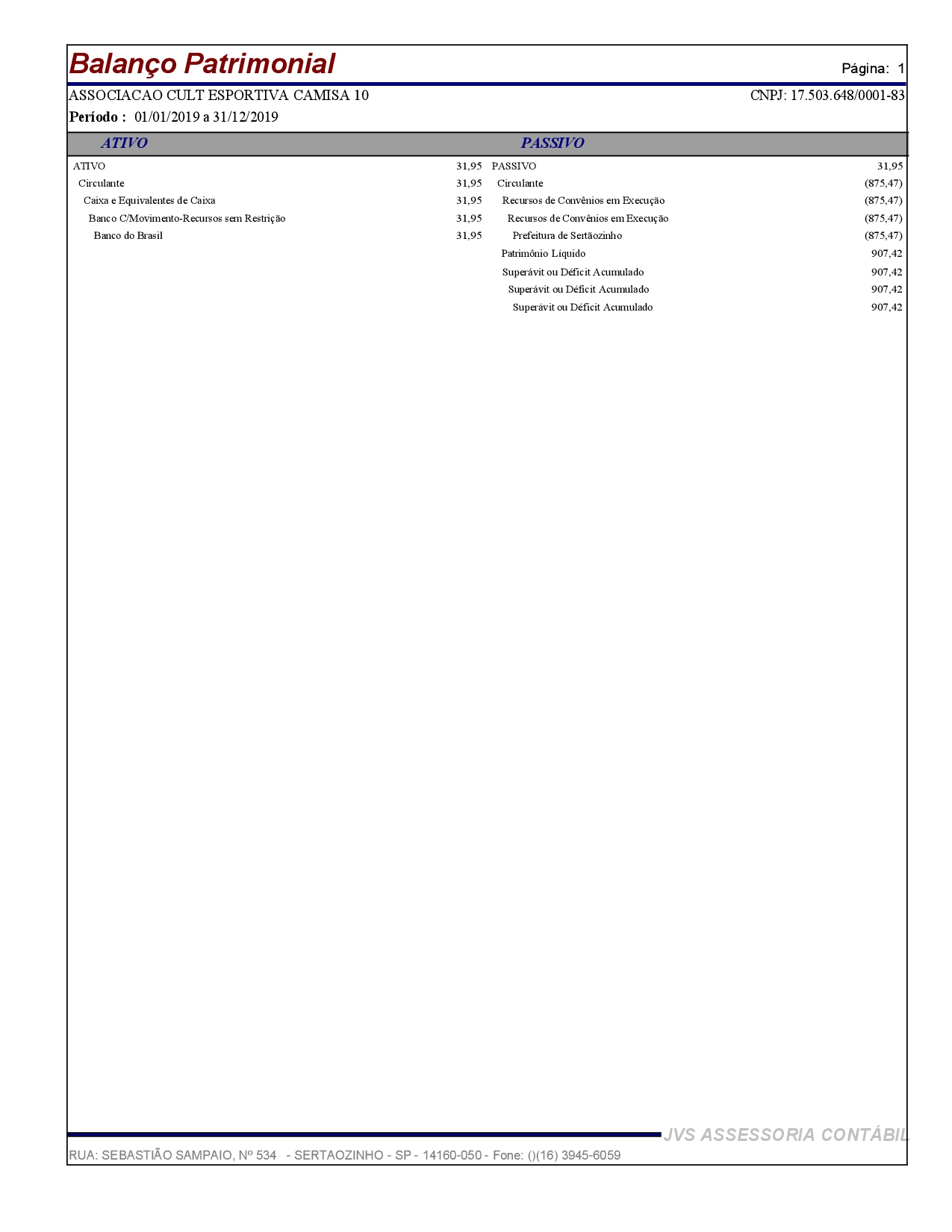 Prestar Contas Até: 31/01/2020